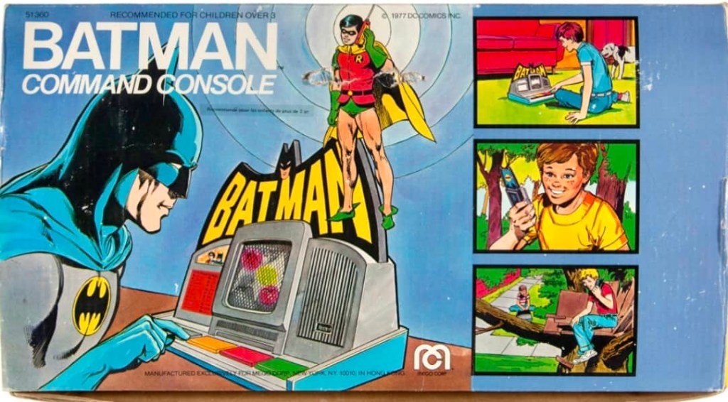 Notes: The Batman Command Console was essentially a re-branded Star Trek Communication Console. It transmits voice and sound to nearby walkie talkies. The console itself had flashing lights and sounds, with two different alert signals that warn of danger. There was even a special code key that can send Morse Code using alphabet and numerals. Overall, this thing was actually pretty cool looking and does look like something Batman might have in his Batcave.