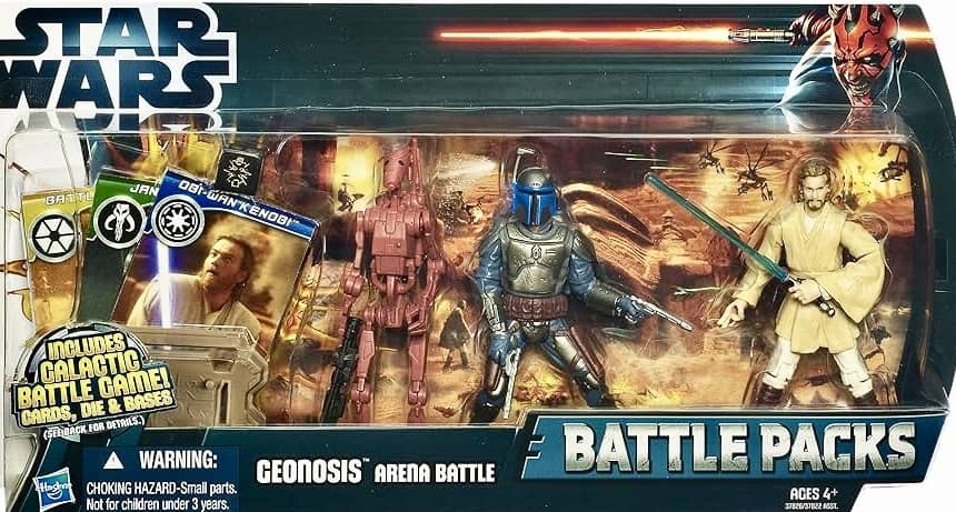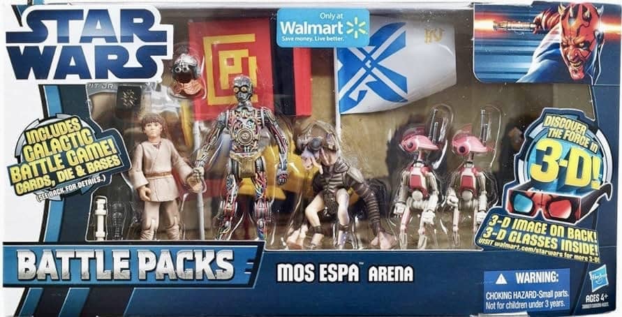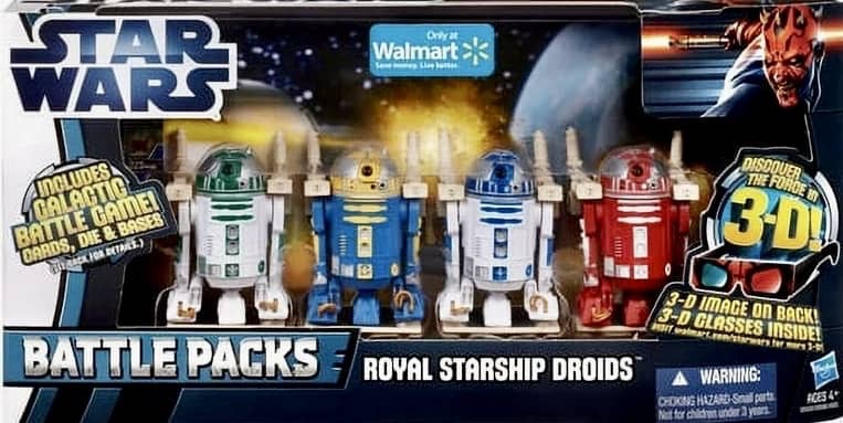Hasbro released eight different Battle Packs for their Movie Heroes/Clone Wars line in 2012. Two of them, Mos Espa Arena and Royal Starship Droids were part of the “Discover The Force” line and exclusive to Walmart stores.