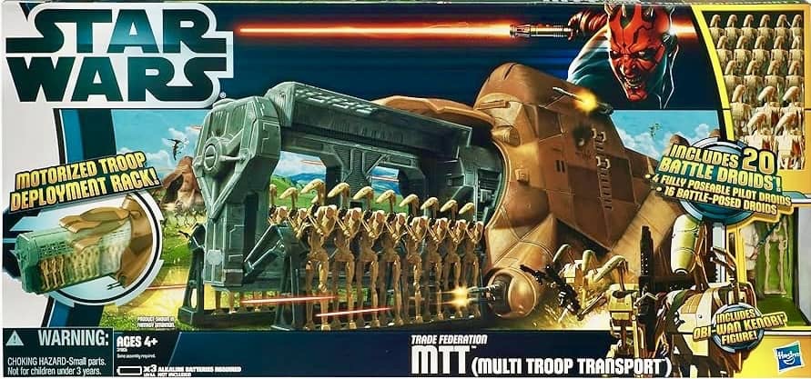 Hasbro released a whopping 18 new vehicles for their Movie Heroes/Clone Wars line in 2012, with many vehicles being re-packs from previous lines. There were some new original concept vehicles released with a vintage “Mini-Rig” vibe, such as the Attack Recon Fighter, Republic Assault Submarine, Naboo Royal Fighter and Republic Dropship. The Remote Control Republic Tank was also a fun new addition. The Trade Federation MTT was a new vehicle that ended up being one of the absolute coolest large scale vehicles that Hasbro produced, and really stands out in this line.