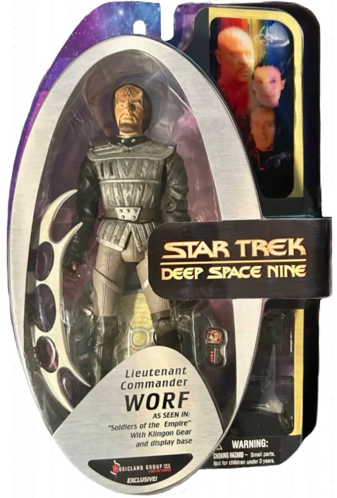 Notes: This version of Worf features him as he appeared in DS9 episode “Soldiers of the Empire”. This figure was available through the Musicland Group.
