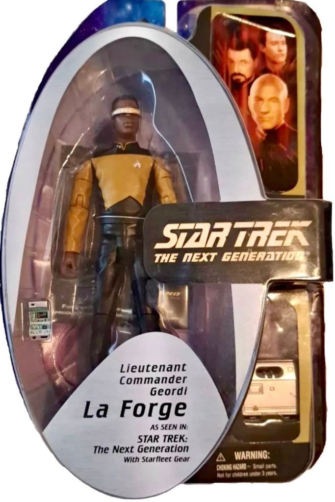 Notes: This version of Geordi LaForge features him from Season 7 of the Next Generation. This figure comes with a tricorder and engineering tool kit.