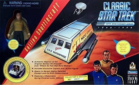 Notes: This new version of the Shuttlecraft Galileo was made to commemorate the 30th Anniversary of the Star Trek franchise. The craft comes with an exclusive Kirk figure and each box is numbered as limited edition.