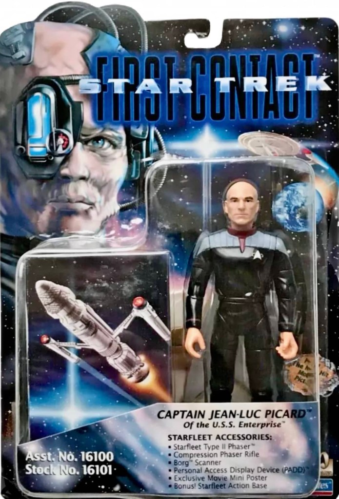 Playmates released a new wave of 9 Inch figures in 1996 for the brand new Star Trek movie, First Contact. The series contained five figures in total with two different versions of Captain Picard. Each box also came with a mini-movie poster.