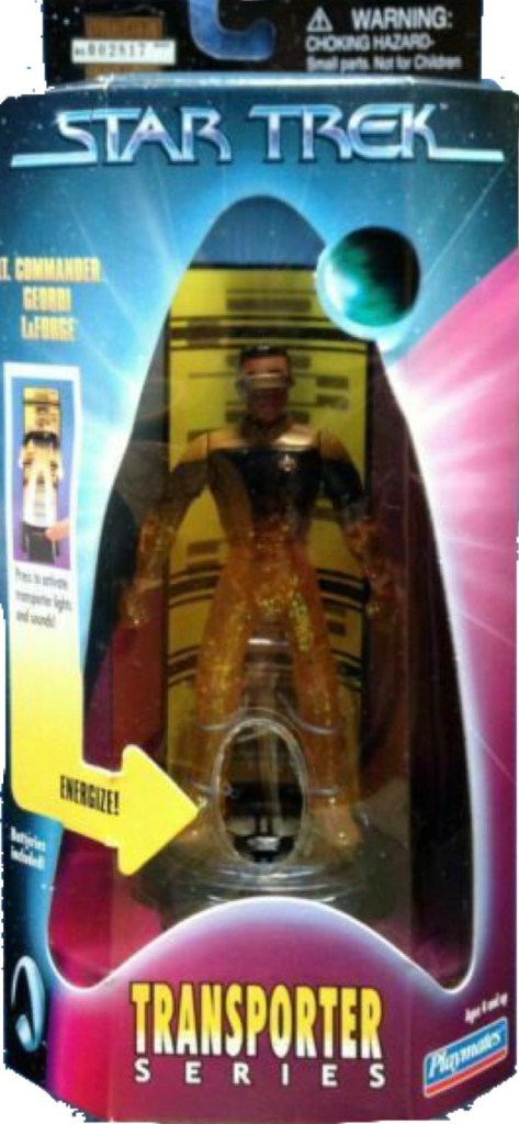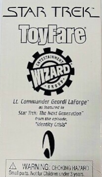 Notes: This new version of Lt. Commander Geordi LaForge features him as he appeared in the Next Generation episode, Identity Crisis. This boxed figure was available through Toyfare Magazine and limited to a production run of 10,000.