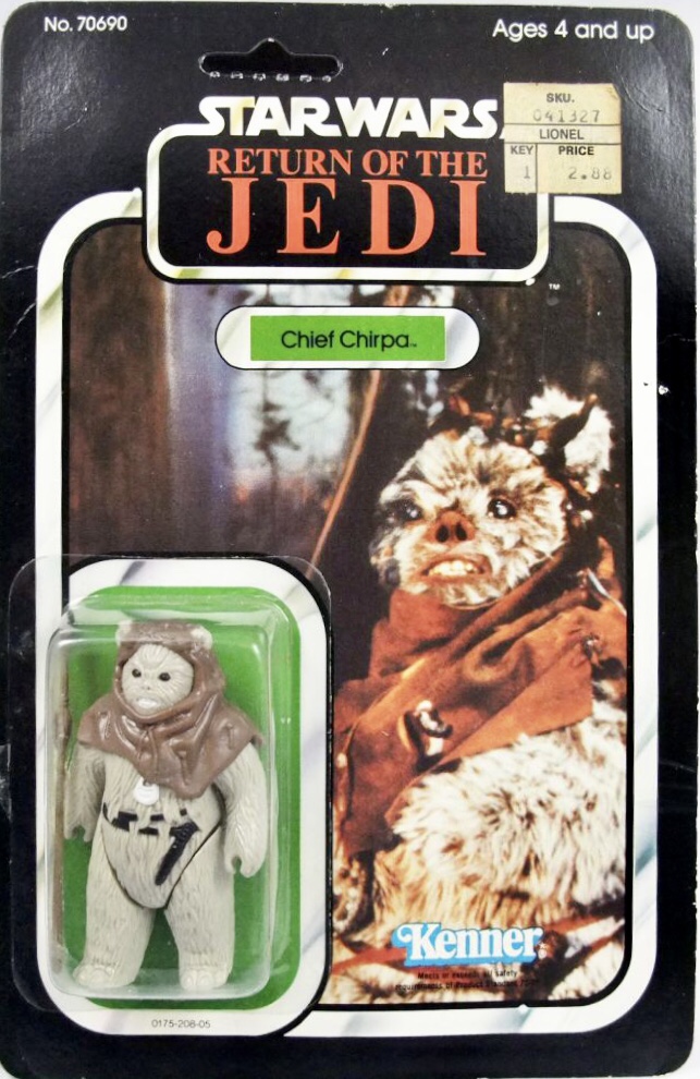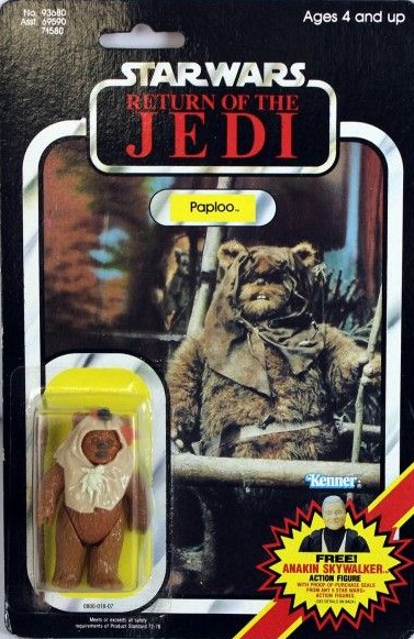 Notes: Like Logray, the picture of Chirpa was blurred out on the back of the early 65 back cards due to Lucasfilm wanting to the Ewoks a secret prior to film release.