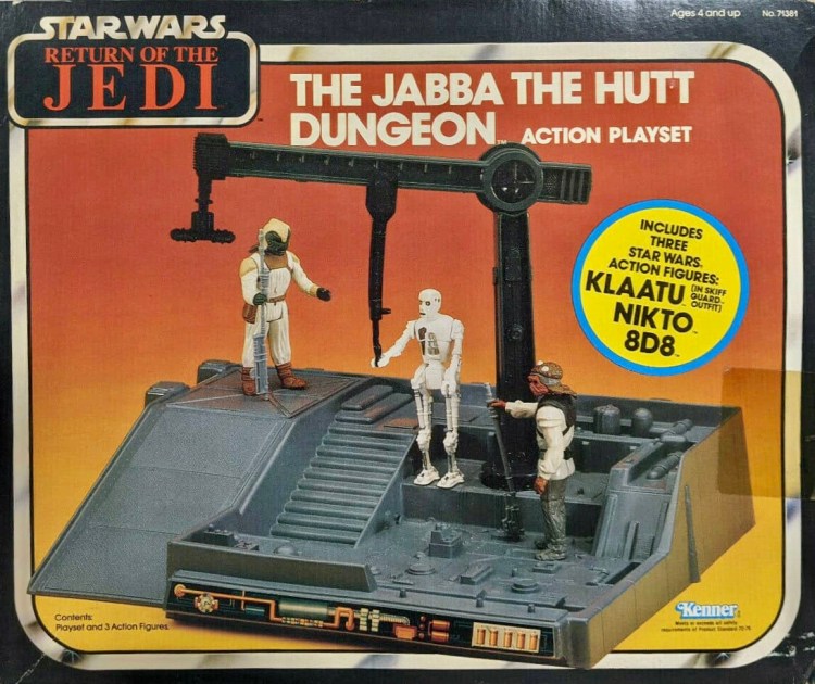 Notes: This was the first of two versions for this playset and came with an Orange colored box. This set came with 3 figures (Klaatu, Nikto, 8D8). The Jabba’s Dungeon Playset was basically the old Star Wars Droid Factory minus the droid parts and was a Sears Exclusive. It’s kind of a strange playset because it doesn’t read dungeon or Jabba’s Palace at all, so this was arguably Kenner’s worst playset effort in the vintage line. That being said, it wont come cheap on the secondary market, especially if the figures are still in their sealed bags.