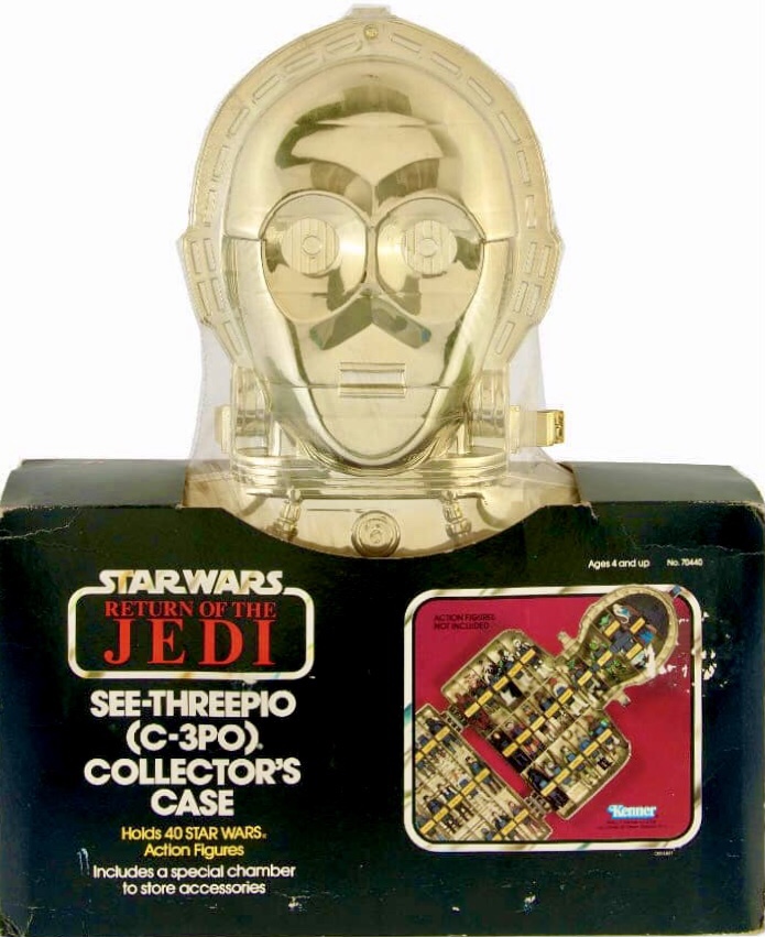 Notes: Like the Darth Vader Collector’s Case released in 1981, the C-3PO case was a great way for kids to store their figures in a fun way, that also looked great as a display piece. The case held 40 figures, along with a compartment for their accessories. Unlike the Vader case, this one had lights and sound features.