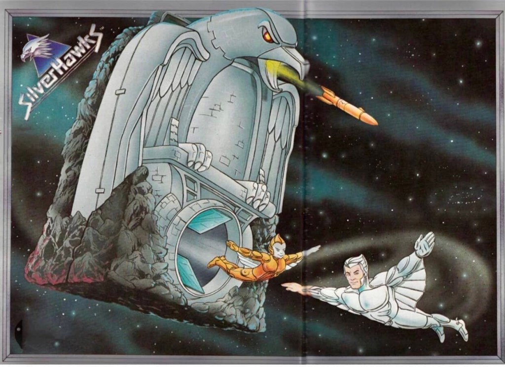 The catalog description stated: “Now kids can recreate the same SilverHawks fantasy with the HawkHaven Playset. Strategic headquarters for the SilverHawks is a hawk-shaped fortress perched on an asteroid and is featured in every episode of the “SilverHawks” animated program. The Playset opens up and includes:”