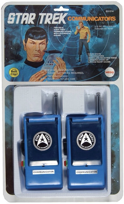 Notes: The Communicators set was the first accessory released by Mego for their Star Trek line in 1974. They were actual working walkie talkies that ran off 9V batteries. These were really great looking pieces and Mego did an excellent job of making them look like actual Communicators.