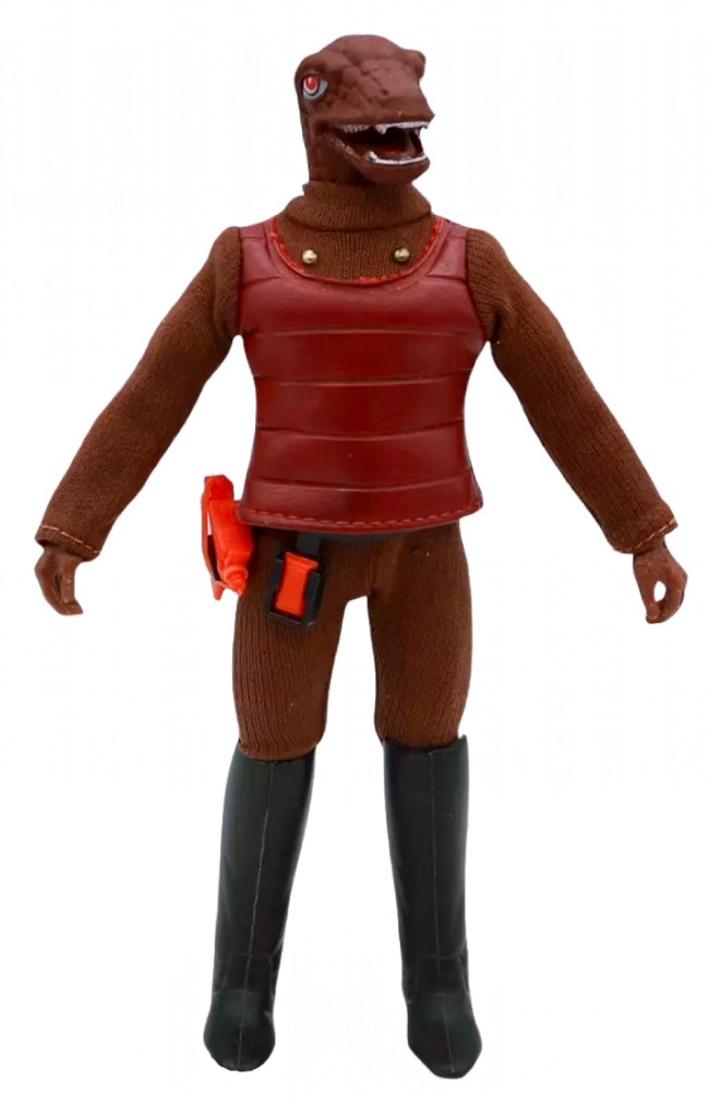 Notes: The Gorn was a case where Mego seriously dropped the ball. He was one of the most iconic Aliens from the Star Trek television show, but Mego used a re-painted head from the Lizard figure and the same outfit as the Klingon, complete with weapons belt, phaser and communicator. This figure does not resemble the classic character from the show at all, not even in the least bit, which was a rare miss for Mego.