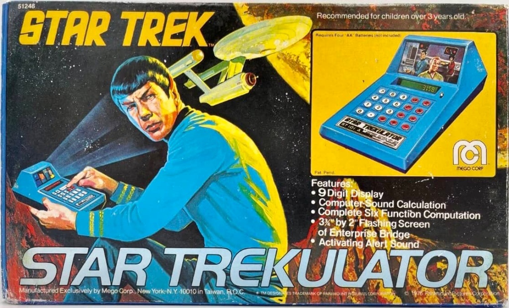 Notes: Who wouldn’t want a Star Trek Calculator back in 1976? I never knew about this back in the day, but if I had, I would’ve been bugging my mom to get me one. The calculator was designed to look like a science officer type computer that Spock might use on the show. It’s actually a tough item to find in boxed condition.