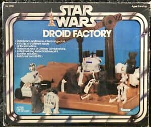 Notes: This was a lot of fun as a kid, being able to put together different combinations of droids and then using them with your regular action figures. It was pretty cool stuff. With all the droid pieces that came with this set, the most memorable part was a simple 3rd leg piece that could fit on the R2 droid unit. This was the only place that one could find a movie accurate R2-D2 figure, complete with the middle leg. The Droid Factory was later re-released for the Empire Strikes Back line, and then re-purposed for two different Jabba’s Dungeon Playsets.