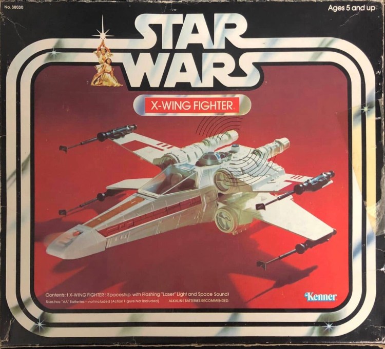 Notes: Like the Tie Fighter, The X-Wing was a must for any kids who wanted to re-create their favorite space battles from the movie. The X-Wing featured a light and sound feature that could replicate the actual sounds, along with a red flashing light. The wings could spread apart for flight action by pushing down on the R2 unit. The X-Wing was also released on the Empire Strikes Back packaging but was replaced by the Battle Damaged version for the Return of the Jedi line.