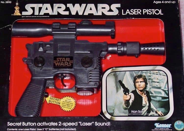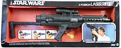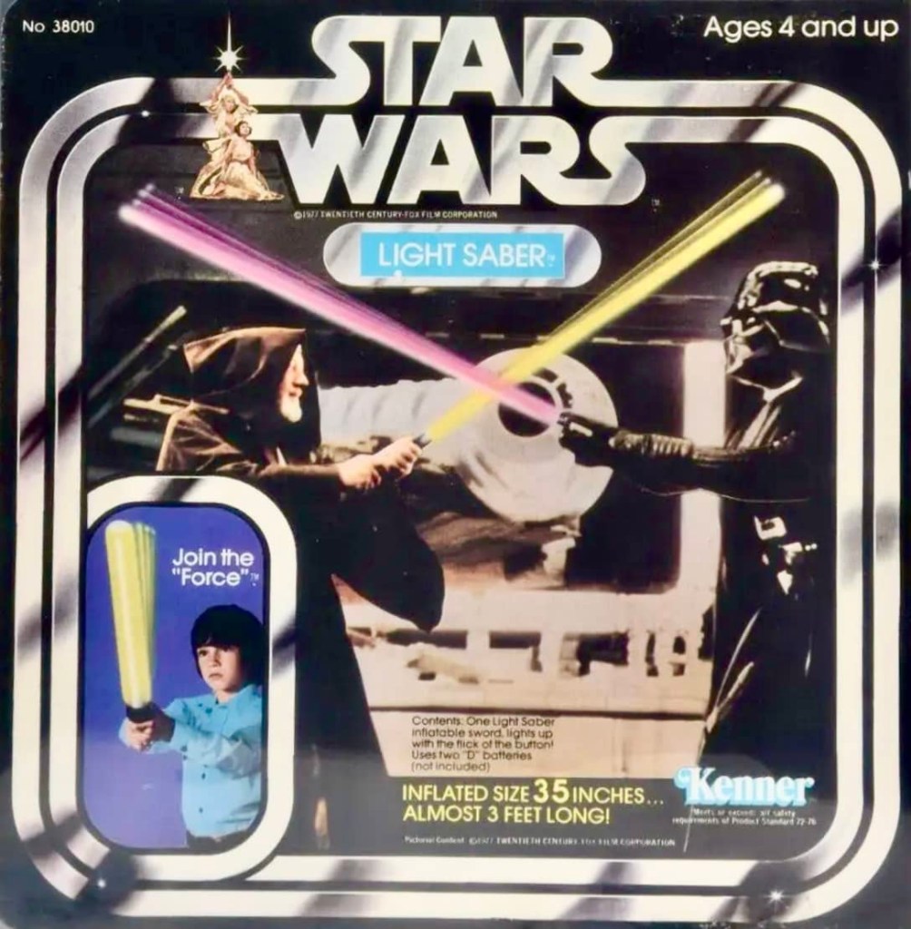 Kenner released some fantastic role play weapons as part of their Star Wars line through the years. For the original Star Wars line, we got the Electronic Laser Rifle and Laser Pistol. These would both be re-released with Empire Strikes Back and Return of the Jedi packaging in later years. This also marked the release of the Inflatable Light Saber. There were two different box packages, but the light saber inside was identical.