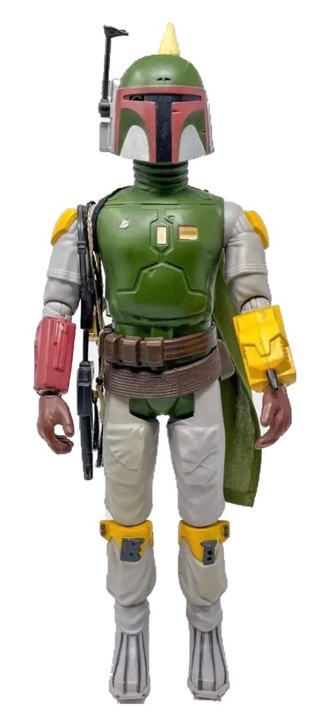 Notes: Boba Fett…….Just the name brings up all kinds of cool thoughts and images. Boba Fett made his debut on the Star Wars Holiday Special, which was aired in December of 1978. His 3.75 inch figures was a massive hit, so it only made sense that he would be included with the 12 inch figures as well. Boba came with all kinds of neat accessories, including a set of Wookie scalps, Laser Blaster and of course his rocket pack and missile. Boba Fett was released just in time for Christmas of 1979.