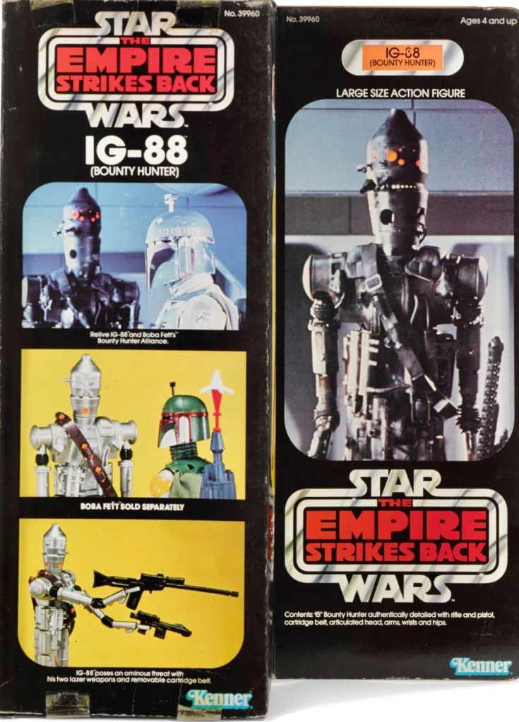 Kenner released a series of 12 inch figures from 1978 to 1980, which were broken down into three waves of 12 different figures before eventually coming to an end. The third and final wave of figures was released in the Summer of 1980, with only two figures. They were the previously released Boba Fett, with new Empire Strikes Back packaging, and IG-88. Kenner had plans to release several more 12 Inch figures, but the line unfortunately came to a close.