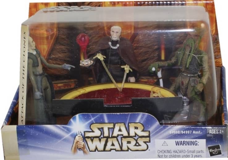 The Star Wars Saga line was released for the newest prequel movie, Episode II: Attack of the Clones in 2002. It also just happened to be the 25th Anniversary of the Star Wars franchise itself. Hasbro created an all-encompassing line with characters from all Star Wars movies. There were several interesting sub-sets, along with other accessories, playsets and vehicles. The Star Wars Saga line included many great looking figures and accessories. Overall, this was an effective line, with a wide assortment of characters.