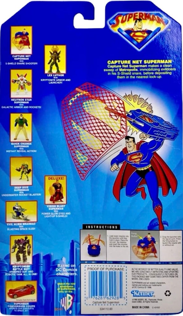 For the premier wave of their Superman Animated Series line, Kenner released six new figures in 1996, which included Capture Net Superman, Deep Dive Superman, Evil Alien Brainiac, Lex Luthor, Neutron Star Superman and Quick Change Superman.
