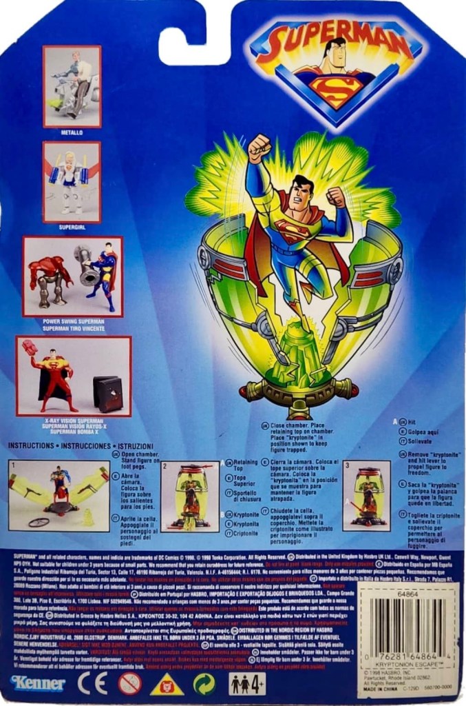 Notes: The Deluxe Kryptonite Escape Superman comes with a green Break-Away Holding Chamber that the Man of Steel escapes from. There is also a piece of Kryptonite Rock.