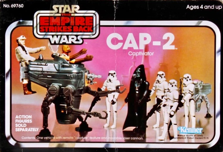 Notes: The Slave 1 was the vehicle that every kid wanted to own after watching the Empire Strikes Back because it was so different but more importantly, it belonged to the baddest bounty hunter in the galaxy, Boba Fett. It also included a carbonite frozen Han Solo for Boba to sell to Jabba, so this was a nice touch. There was also a ramp, access panels and opening cockpit.
