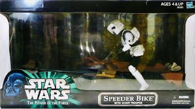 Since the Power of the Force line had technically ended the year before, Hasbro released whatever had been left over from the line in 2000. This included two new 12″ large scale sets featuring a Sandtrooper with Dewback, and a Speeder Bike with Scout Trooper. These were both retail exclusives and are very impressive sets.
