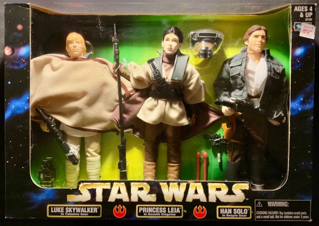 These new 12 Inch figures had six points of articulation and quickly became a fan favorite of collectors. Hasbro gave us a great assortment of characters from all three original trilogy movies, and kudos to Hasbro for producing interesting new takes on our favorite Star Wars characters. For the incredible exclusives offered, it seemed as if every retailer in the toy business during the late 1990’s got into the act, including Target, Walmart, KB Toys, Service Merchandise, JC Penney’s, FAO Schwarz and of course, Toys R Us. Some of the highlights of this incredible line include the 12″ Han Solo w/ Tauntaun, Sandtrooper w/ Dewback, Speeder Bike w/ Scout Trooper and Princess Leia as Jabba’s Prisoner w/ R2-D2.