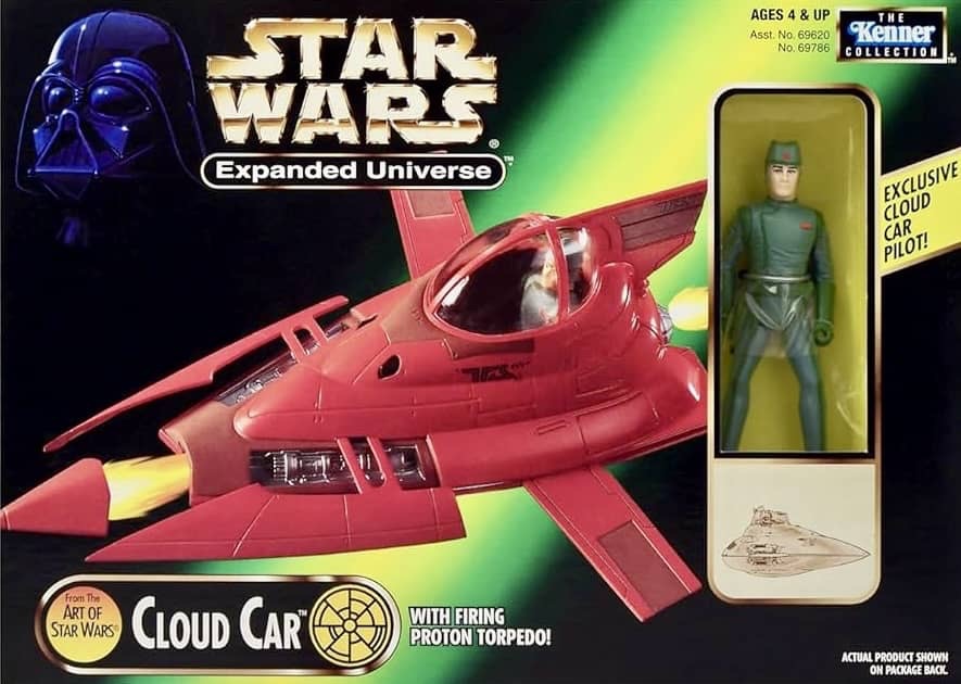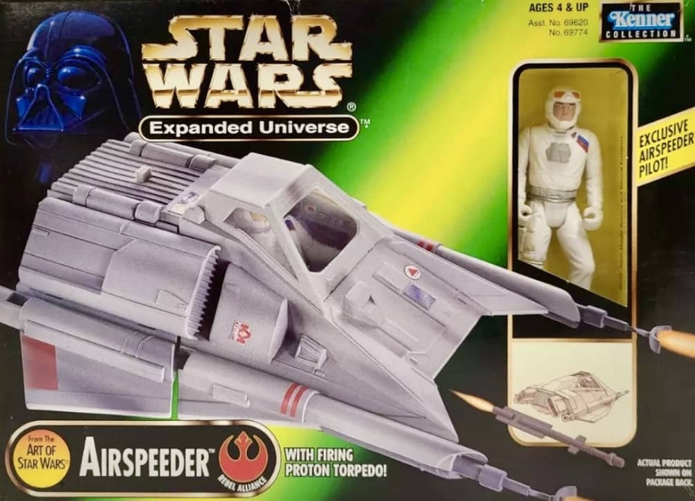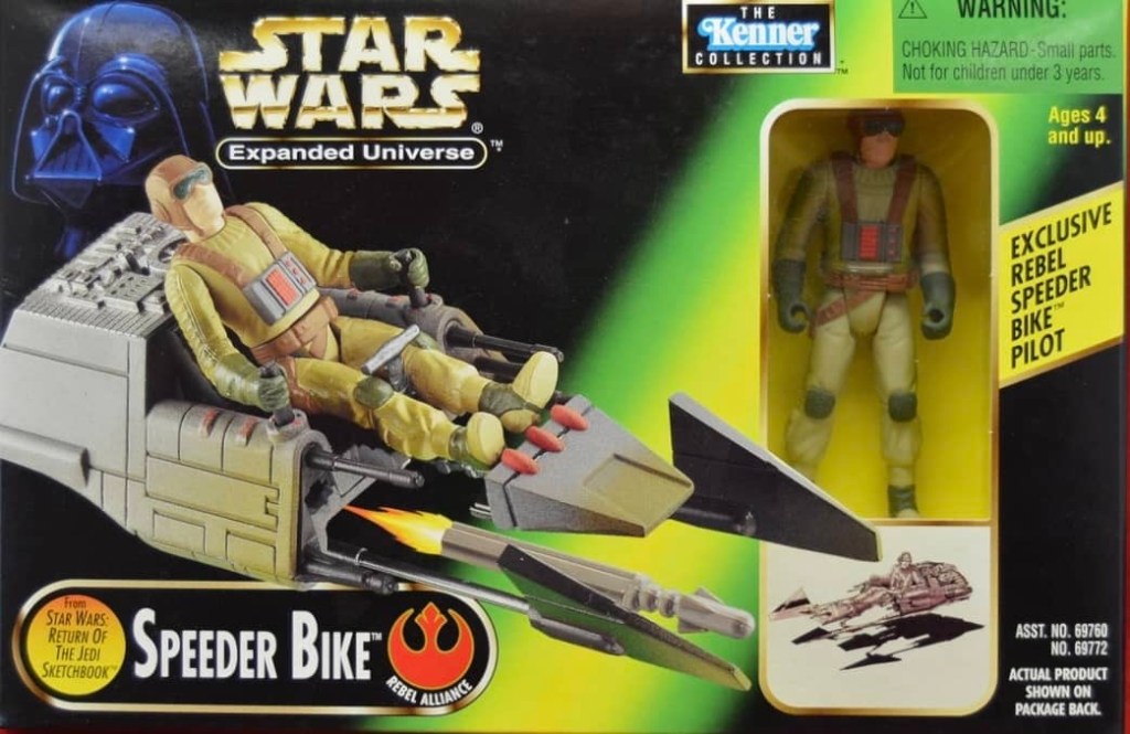 Hasbro released three vehicles for their Expanded Universe line in 1998 with all three being original concept vehicles, similar to the old “Mini-Rigs” of the 1980’s. The Speeder Bike and Cloud Car were new designs of previously released vehicles, while the Air Speeder was a new addition.