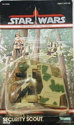 Notes: The Security Scout was a Power of the Force version of Kenner’s popular Mini-Rigs lines, but with a completely new concept vehicle. This was a camouflaged vehicle that acted as sort of a jet pack for figures.