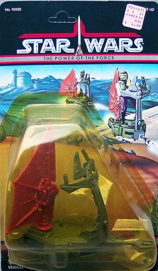 Notes: The Imperial Sniper was a Power of the Force version of Kenner’s popular Mini-Rigs lines, but with a completely new concept vehicle. It’s wings were movable and came with a hook to pick-up other figures.