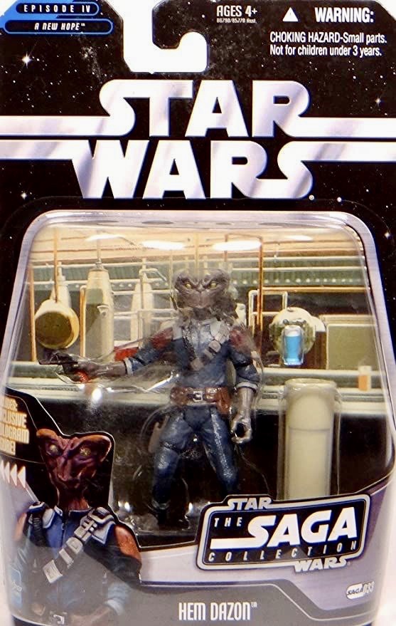 The Saga Collection released 74 basic figures over a two year period with 10 of them being released on the Ultimate Galactic Hunt cards as well. Give Hasbro some credit for producing the first Major Bren Derlin (Cliff Clavin from Cheers) figure. It should be noted that the last 5 figures on this line were Walmart Exclusives.