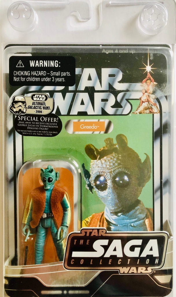 The packaging for the Saga Collection line would’ve been great……if it hadn’t just been done with the Original Trilogy Collection line a few years prior. The packaging re-used the silver striping across the top of the card with a small photo of the character in the bottom left side of the card. Once again, Hasbro used a background photo on the card to make the character fit right into the action, which was still really cool looking, even if it had been done before. One of the gimmicks for this line was the introduction of the Ultimate Galactic Hunt or UGH for you acronym lovers. The UGH basically used the same card and figure except the card was done in a gold foil instead of the standard issue. Each of the UGH packages contained a mail order form to send in for the big prize, which was a George Lucas in Stormtrooper action figure (Ok, now that is a pretty great prize).