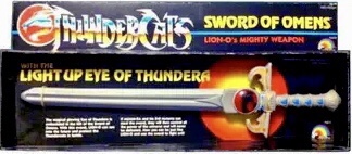 Notes: The Sword of Omens is the weapon used by Lion-O in the Thundercats storyline. It’s an ancient sword that has been passed down through generations to the most worthy leader of the Thundercats team. The sword has a light-up Eye of Thundera feature that is run by one “AA” battery.