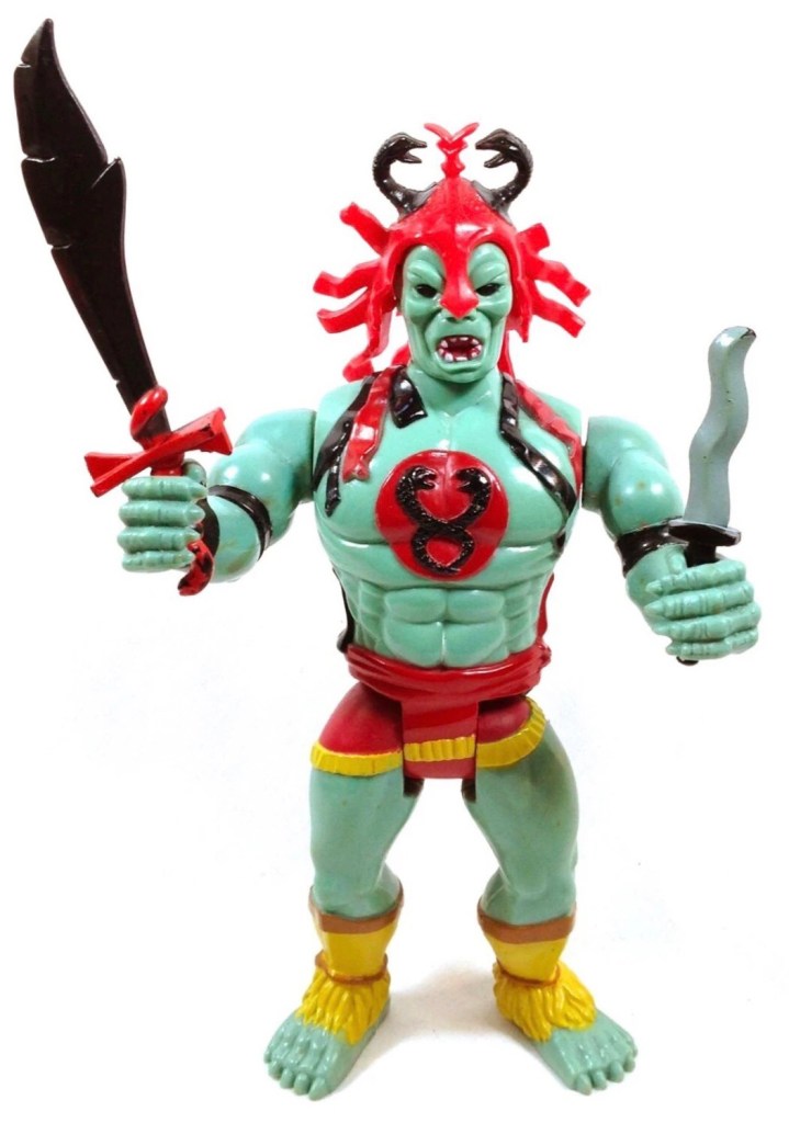 Notes: Monkian was another of Mumm-Ra’s henchmen that would wreak havoc on the Thundercats team . Monkian featured a special Battle-Matic Action lever on the back to move his arms. Monkian’s mace had two different color variations with one having a red chain and the other being a black chain.