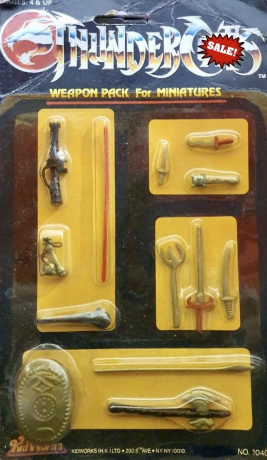 Other toy companies were allowed to create different variations of Thundercats figures, and the Kidworks Toy Company produced miniatures figures based on the characters which had already been released by LJN Toys from Series 1 and 2. The figures were only produced for the 1986 wave.