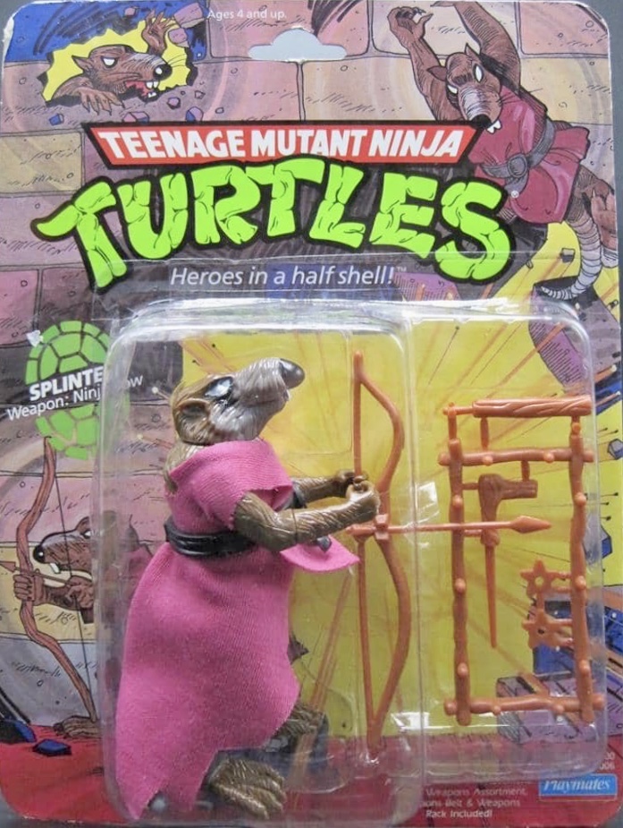 Notes: Master Splinter is the loyal and wise leader of the good guys and mentor to our favorite turtles. Splinter is a cross between Mr. Miyagi, Obi-Wan Kenobi and Gandalf, who now happens to mentor four mutated teenage turtles in desperate need of guidance. Splinter used to be the human ninja master of Shredder long ago.