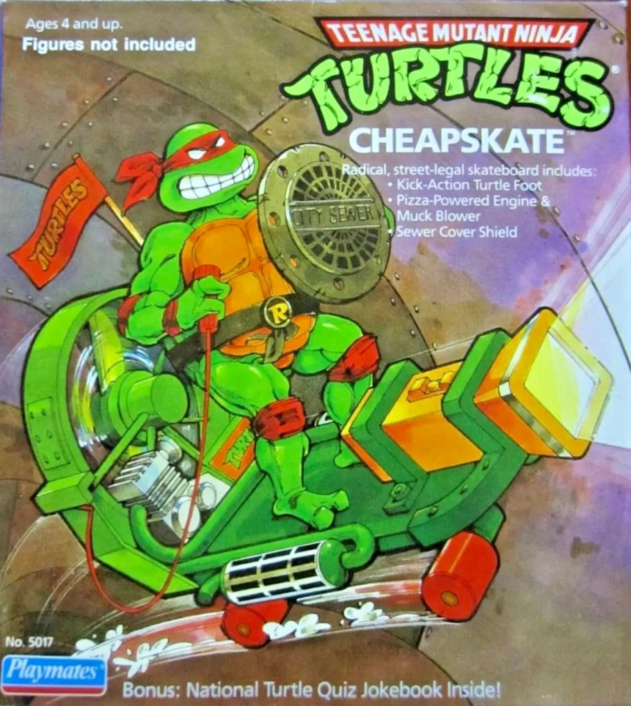 Notes: The Cheapskate is described as a “radical, street-legal skateboard”. It included a front kicking action to knock down the bad guys, along with a searchlight and a sewer cover.