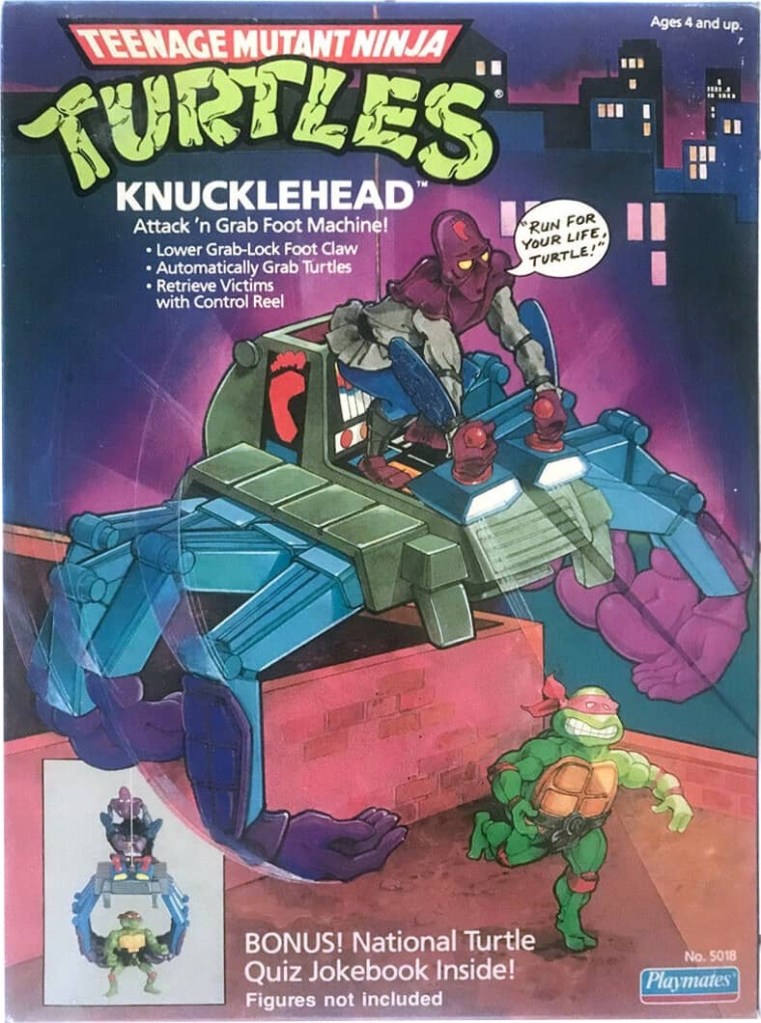 Notes: The bad guys need vehicles too! The Knucklehead is described as an “attack ‘n grab foot machine”. It included a feature that would allow you grab the turtles and take them as prisoners.