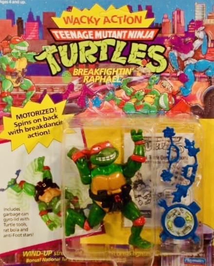 Notes: Raphael gets a 2nd figure with this Breakfightin’ version. He is part of the wacky action figure series and comes with a new sliding ninja spin feature that allows Raphael to spin around when you wind up his power pack.