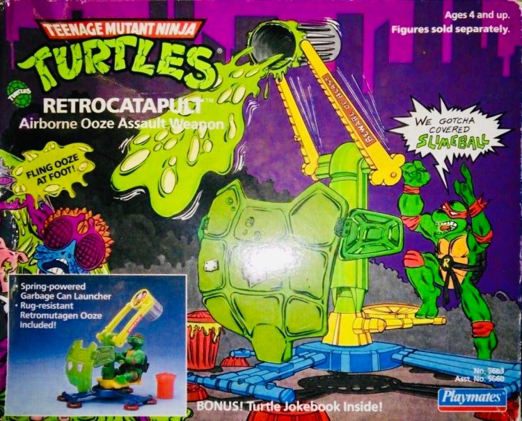 Notes: The original “Airborne Ooze Assault Weapon”, this nasty weapon was used by the turtles to launch garbage cans of ooze towards the enemy.