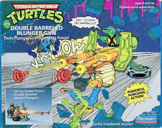 Notes: The Double Barreled Plunger Gun were “Twin Plungers of Pounding Force” that the turtles would use to kick some Foot Clan backside.