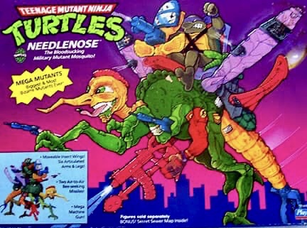 Notes: Another creation from the dreaded Dimension X by Krang, Needlenose is a giant blood sucking mosquito that is used as a hideous mount for the Foot Clan soldiers.