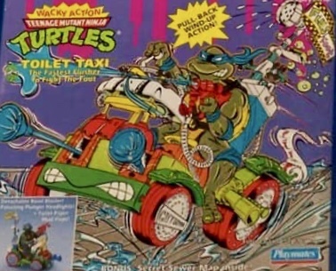Notes: Part of the Wacky Action line, The Toilet Taxi is “The fastest flusher to fight the foot”. The latest in turtle technology, the Toilet Taxi is the fastest way to get around the sewers in “style”.