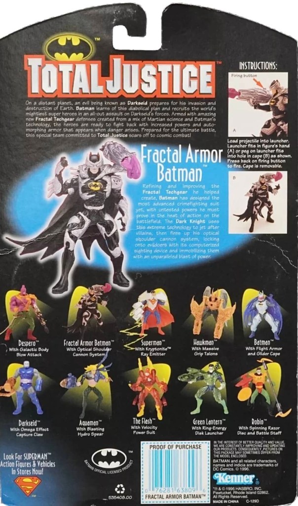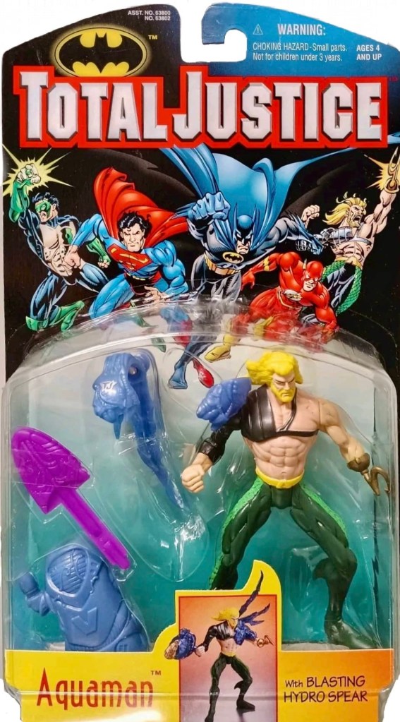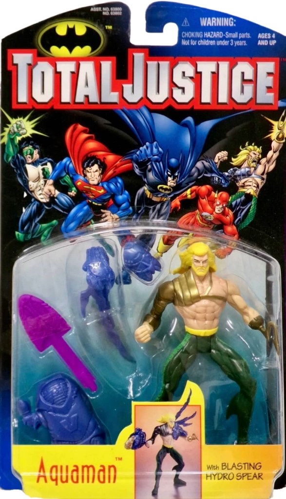 For the debut of their Total Justice line, Kenner released six new figures in 1996, which included Aquaman, Batman, Darkseid, Flash, Green Lantern and Robin. This series was among the last DC Comics action figures released under the Kenner banner, as they had been previously acquired by Hasbro.