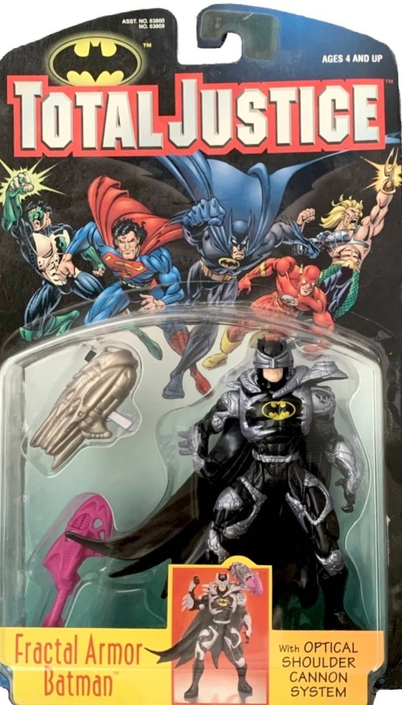 Kenner had done the DC Comics thing before, with their Super Powers Collection line, so they wanted to do something completely different with Total Justice. Kenner partnered with DC Comics to create a Total Justice comic series, and the toy line was based on the comic. Each character would feature “Fractal Technology or Armor”, and would be unique to each. The premier wave in 1996 featured Aquaman, Batman, Darkseid, Flash, Green Lantern and Robin. Four more figures joined them for the second wave, with Despero, Superman, Hawkman and a second version of Batman with Fractal Armor. The third and final wave in 1997 included Black Lightning, Green Arrow, Huntress and Parallax. There were also three exclusives with Batman and Superman with Hologram Armor through Mail Order, and Reverse Flash through Toyfare Magazine. Interestingly enough, Kenner did not release any accessories or vehicles for the Total Justice line