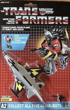 Notes: Slingshot is part of the Aerialbots that come together to form Superion. He is also able to change into a Sea Harrier Jet.