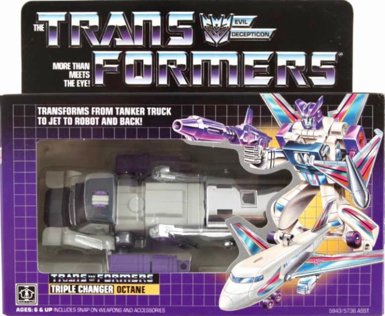 Notes: Octane was a Triple Changer, who turned into three different vehicles. Octane transforms from robot to Semi-Truck w/ Fuel Tanker to Boeing 767 Jet Plane.