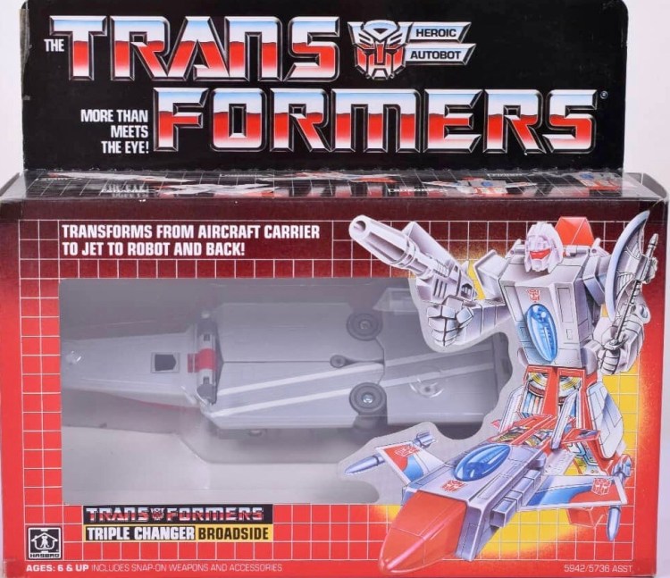 Notes: Broadside was a Triple Changer, who could turn into three different vehicles. Broadside transforms from robot to Aircraft Carrier to Jet Fighter.
