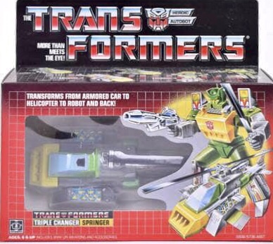 Notes: Springer was a Triple Changer, who could turn into three different vehicles. Springer transforms from robot to Armored Car to Generic Helicopter.
