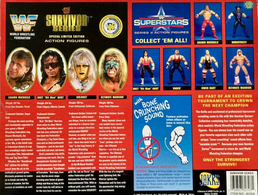 Next up was Galoob, who began producing WCW action figures from 1990 to 1991. The WCW was closest thing that the WWF had as a rival at the time, mostly due to an incredible lineup of their own with such big names as Ric Flair, Sid Vicious, Lex Luger, The Steiner Brothers, The Road Warriors, and Sting. Once again, the issue was Galoob’s lack of marketing and resources, and the line ended after two short years. Toy Biz then picked up the WCW toy rights in 1999, and released a series of action figures and accessories of their own until eventually ending in 2001. Finally, a relatively new toy company called Jakks Pacific secured the WWF toy rights in 1996, when they began releasing their own crazy successful wrestling action figure line. Jakks Pacific seemed like they finally figured out the secret to wrestling toys and really broke through to fans of all ages with their dozens of different themed series with our favorite wrestling superstars. This fun and successful line eventually ended in 2009, but not before Jakks Pacific left an indelible mark on the action figure industry that has lasted until this day.