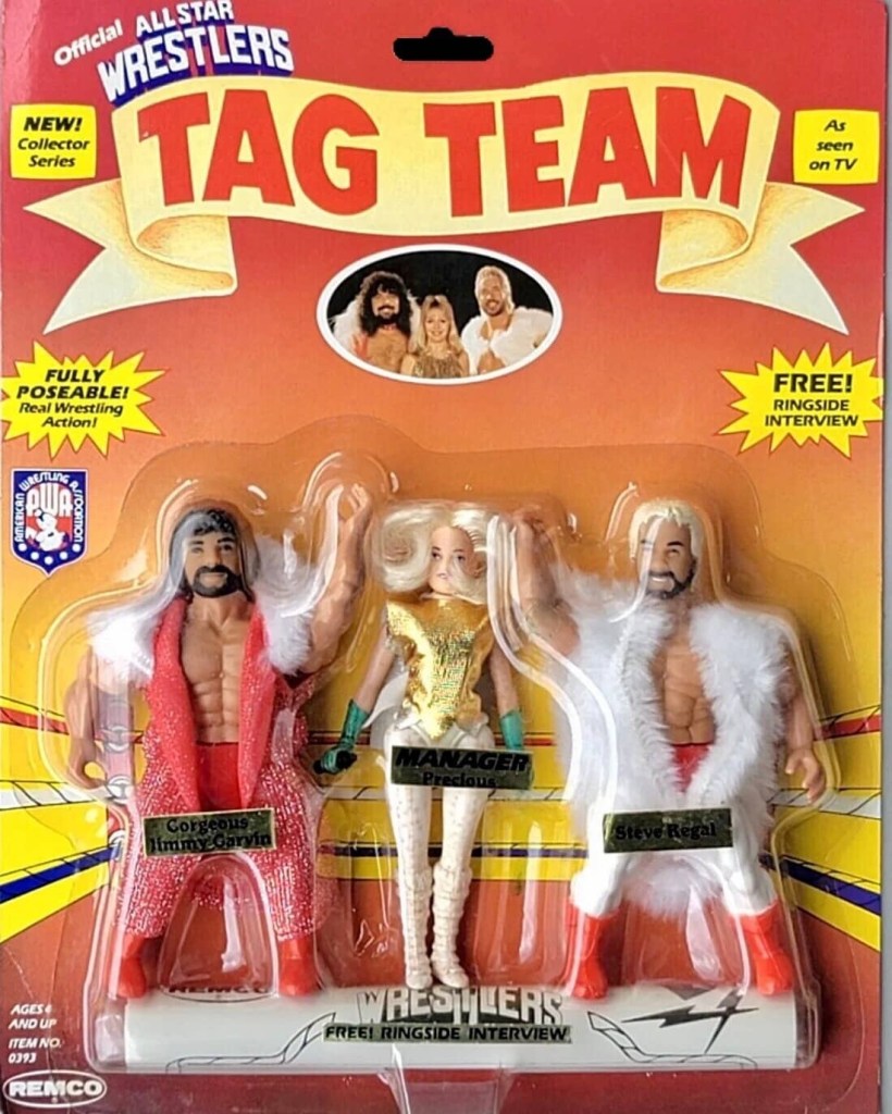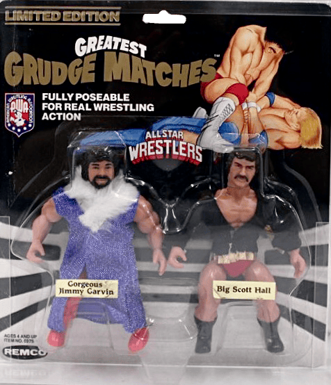 The fourth wave of AWA Superstar figures featured four Tag Team multipacks with six brand new figure and two re-issued figures, Gorgeous Jimmy Garvin and Larry Zbyszko. Remco changed up the packaging once again for this wave, by changing the color scheme to black and gold.